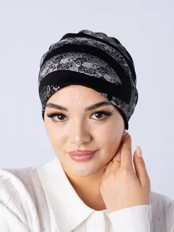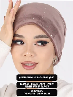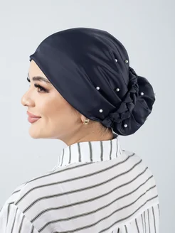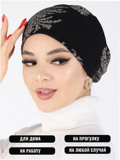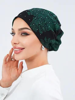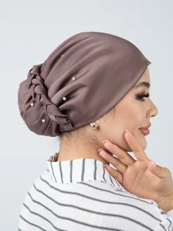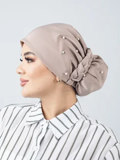 Готовый мусульманский платок на резинке.Тюрбан.Жемчуг
