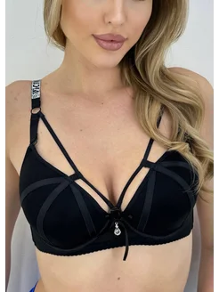Бюстгальтер красивый со стразами на бретелях без пушап