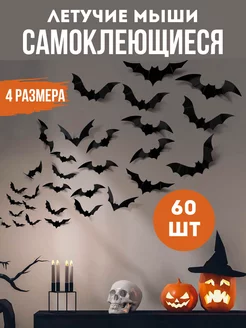3д наклейки на хэллоуин, летучая мышь 60 шт