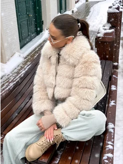 Экошуба укороченная пушистая на молнии