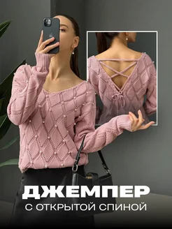Джемпер с открытой спиной оверсайз нарядный
