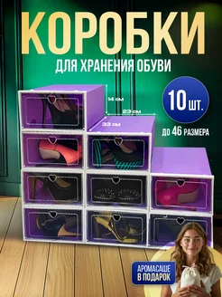 Коробки для хранения обуви и вещей прозрачные 10 шт