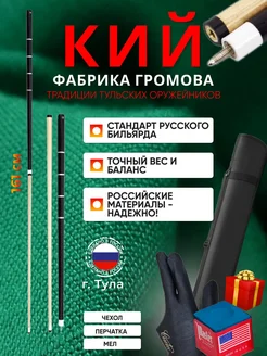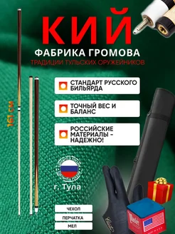 Кий для русского бильярда 160 см. двухсоставной в чехле