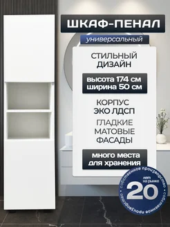 Шкаф пенал напольный в ванную 50x174x27, МДФ