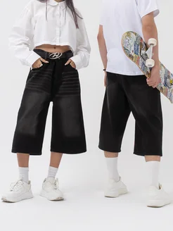 Шорты джинсовые длинные широкие багги оверсайз y2k