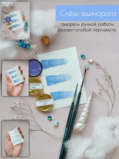 Акварель ручной работы розово-голубой перламутр. 2мл