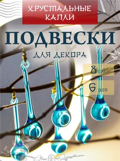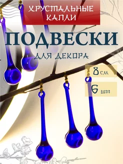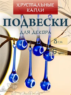 Подвески для декора Хрустальная капля глубокий синий, 8 см