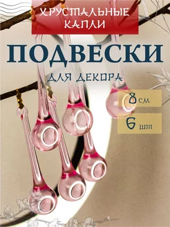 Подвески для декора Хрустальная капля нежно розовый, 8 см