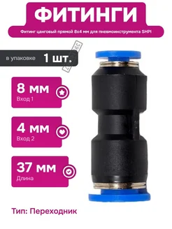Цанговый прямой соединительный фитинг для трубок 8х4 мм