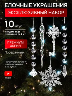 Новогодние игрушки на елку сосульки капельки 10 шт