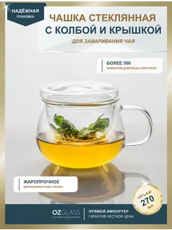 Стеклянная чашка с ручкой и стеклянной крышкой 270 мл