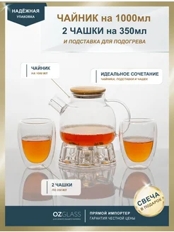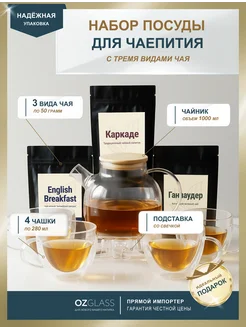 Набор чайник заварочный подставка 4 чашки и 3 вида чая