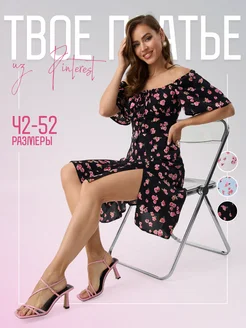Платье крестьянка короткое в цветочек