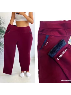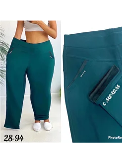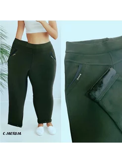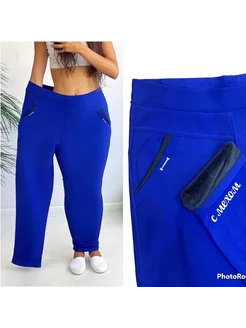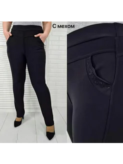 Брюки классические черные мехаштаны с мехом тёплый большой