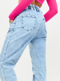Джинсы женские джоггеры на резинке с высокой посадкой