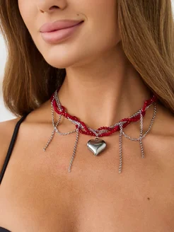 Колье чокер на шею бижутерия украшение с кулоном сердце