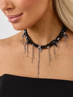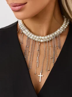 Колье чокер на шею жемчуг ожерелье многослойное жемчужное