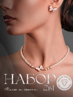 Набор бижутерии 2в1 жемчужное колье и серьги бабочки