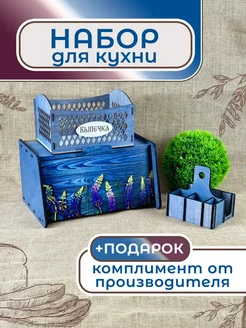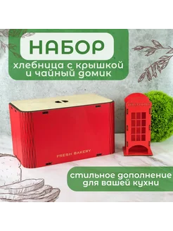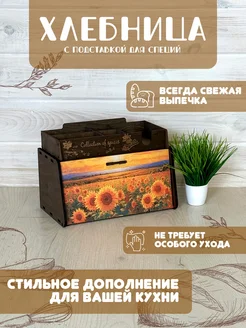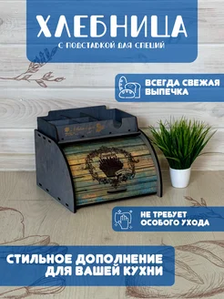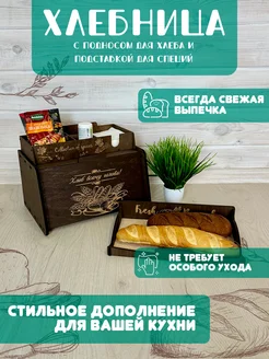 Хлебница деревянная и 2 подставки для специй и сдобы