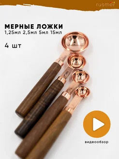 Маленькие мерные ложки с деревянной ручкой, 4 шт