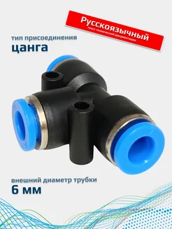 Фитинг пневматический 6мм Т-образный цанговый FA-PUT 6