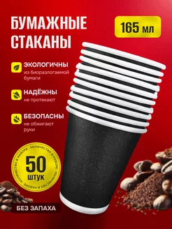 Стаканы одноразовые бумажные для кофе и чая 165 мл 50 шт
