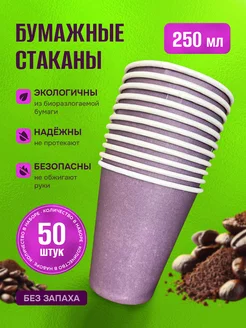 Стаканы одноразовые бумажные для кофе и чая 250 мл 50 шт