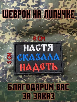 Шеврон на липучке белый текст "Карина сказала надеть"