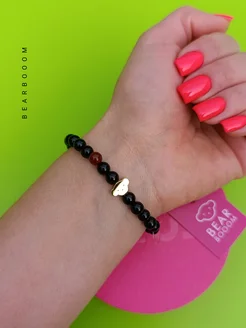 Браслет из чёрного оникса и сердолика
