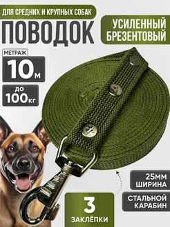 Поводок для собак брезентовый усиленный 10 м х 25 мм хаки