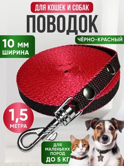 Поводок для кошек и собак 1.5 м х 10 мм черно-красный