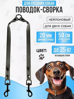 Поводок для двух собак 50 см х 2 х 20 мм серый
