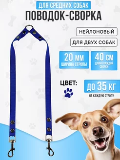 Поводок для двух собак нейлоновый 40 см х 2 х 20 мм синий