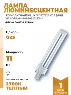 Лампа люминесцентная компактнаяDULUX S 11Вт 827 G23 1 шт