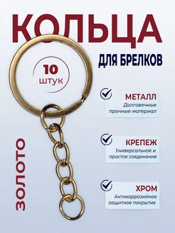 Кольцо с цепочкой для ключей и брелков 10 штук