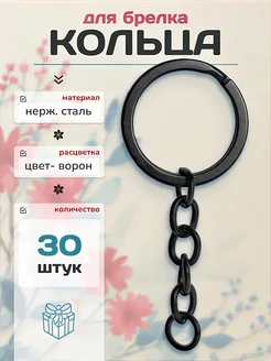 Кольца для брелка с цепочкой чёрные, набор 30 шт