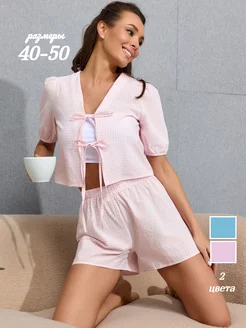 Пижама на завязках с шортами и рубашкой