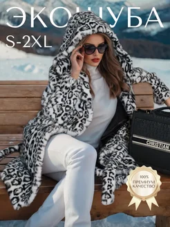 Шуба искусственная леопардовая зимняя экошуба с капюшоном