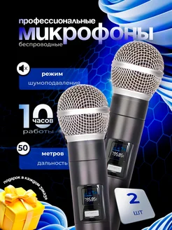 Беспроводные микрофоны профессиональные для караоке 2 шт