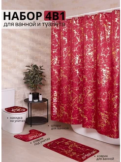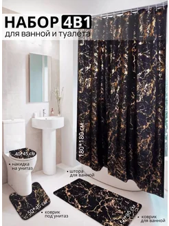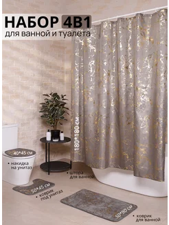 Штора и коврики в ванную и туалет комплект 4 в 1