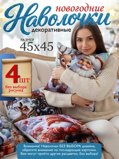 Наволочка декоративная новогодняя 45х45 на молнии - 4 шт