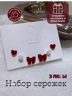 Набор сережек бантики сердечки