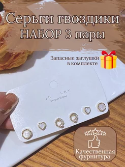 Серьги гвоздики набор сердечки