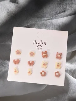 набор сережек плюшевая мишка