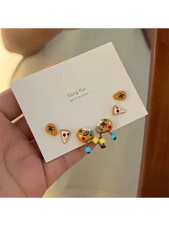 набор сережек бижутерия пицца печеньки