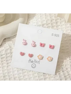 набор бижутерии серьги зайчик бантик сердечки цветочек