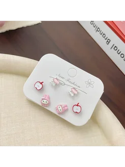 набор бижутерии яблоко зайчик котик розовый