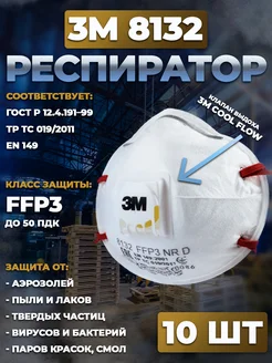 Маска респиратор защитный 8132 FFP3 с клапаном 10 шт