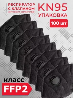 Респиратор FFP2 KN95 с клапаном дыхания черный 100 шт