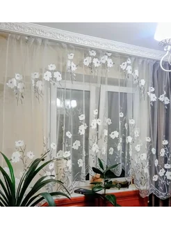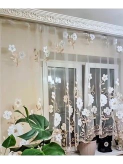 Тюль короткая для кухни с вышивкой 300х180